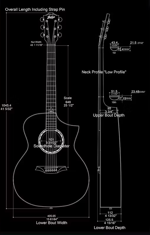 - Mástil: Caoba con 2 tiras de refuerzo de ébano Amara
