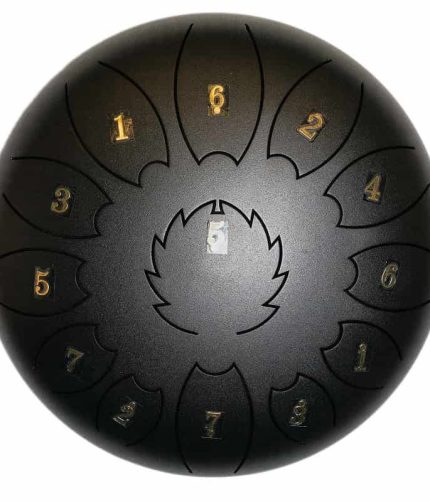 Hecho de aleación de acero y titanio y recubierto con una pintura duradera que protege contra el deslustre, desgastes y rayas. Hecho a mano por artesanos, Estos tambores producen un sonido limpio, etéreo, parecido al de Buda. Escala diatónica.