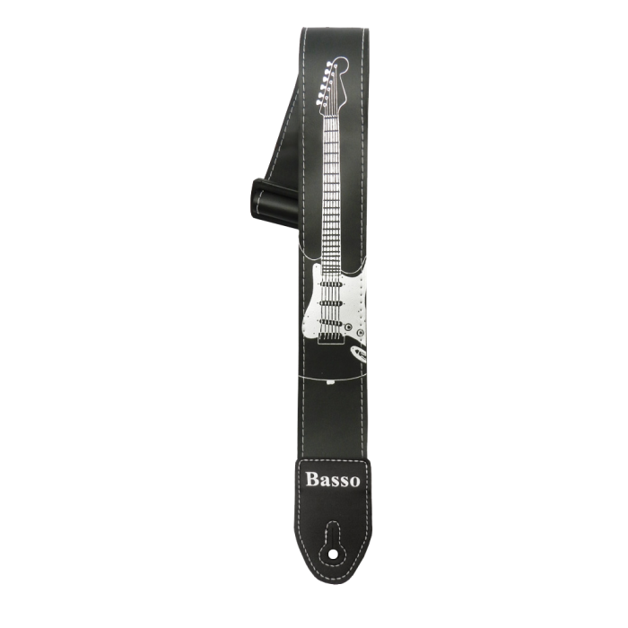 CORREA BASSO PARA GUITARRA SERIGRAFIADA NEGRA STRATO