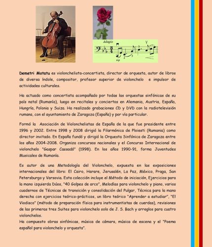 Demetri Motatu es violonchelista-concertista, director de orquesta, autor de libros, compositor (el “Poema para violonchelo y orquesta sinfónica”, cuarteto de cuerda, trio, etc.), profesor superior de violonchelo con una amplia experiencia pedagógica. Organizador de varios concursos nacionales de violonchelo y del Concurso internacional “Gaspar Cassadó” (1998) así como numerosas clases magistrales. Fue fundador y presidente de la Asociación de Violonchelistas de España. Durante diez años fue director invitado permanente de la Filarmónica de Ploiesti / Rumanía). Fundó y dirigió la Orquesta Sinfónica de Zaragoza entre los años 2004 y 2008. Entre otras actividades destaca la de fundador de “Jeunesses Musicales” de Rumania, (1990) y su representante en Bruselas/Bélgica. Como concertista actúa con todas las orquestas sinfónicas de Rumanía y en numerosísimos recitales y conciertos en España, Alemania, Rumanía, etc. Su metodología fue expuesta en varias ferias internacionales del libro (Praga, Varsovia, San Petersburgo, La Paz, etc.).