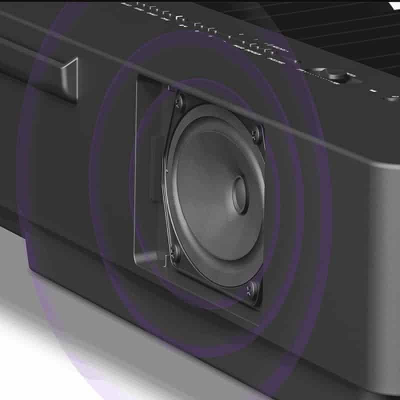 La posición y el ángulo de los altavoces, tanto en la parte delantera como en la trasera del P-225, se han ajustado para reproducir lo más fielmente posible los sonidos reflejados por la tabla armónica y la tapa de un piano de cola acústico. Esta colocación ofrece al intérprete un entorno sonoro confortable cuando el P-225 se coloca contra una pared.